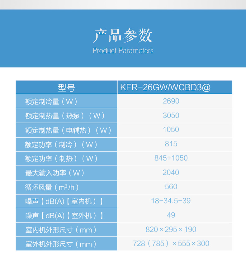 KFR-26GW/WCBD3 當前位置:銀川首頁(yè)>> 家用空調系列 >> KFR-26GW/WCBD3